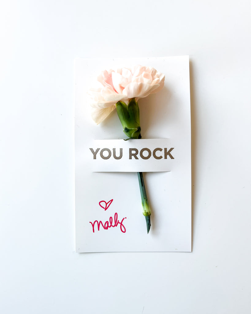 Our Flowergrams are back for a limited time — each includes an embossed saying (LOVE YOU, BE MINE, or YOU ROCK) accompanied with a fresh bloom! Send special notes to your Valentine-Galentine-Palentine this year with our Signature Flowergrams.